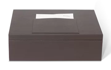 Brúni Capri þvottakassinn er í senn fágaður og hagnýtur. Hann er úr brúnu lúxus efni með vönduðum saumum og hannaður til að geyma og skila þvotti á snyrtilegan hátt. Með hólfi ofan á fyrir þvottaseðil. Vatnsfráhrindandi, auðhreinsanleg hönnun gera hann að ómissandi fylgihlut fyrir þá sem vilja viðhalda háum gæðastaðli í þjónustu og framsetningu.