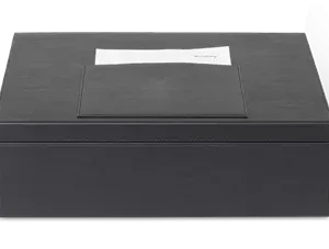 Svarti Capri þvottakassinn er í senn fágaður og hagnýtur. Hann er úr svörtu lúxus efni með vönduðum saumum og hannaður til að geyma og skila þvotti á snyrtilegan hátt. Með hólfi ofan á fyrir þvottaseðil. Vatnsfráhrindandi, auðhreinsanleg hönnun gera hann að ómissandi fylgihlut fyrir þá sem vilja viðhalda háum gæðastaðli í þjónustu og framsetningu.