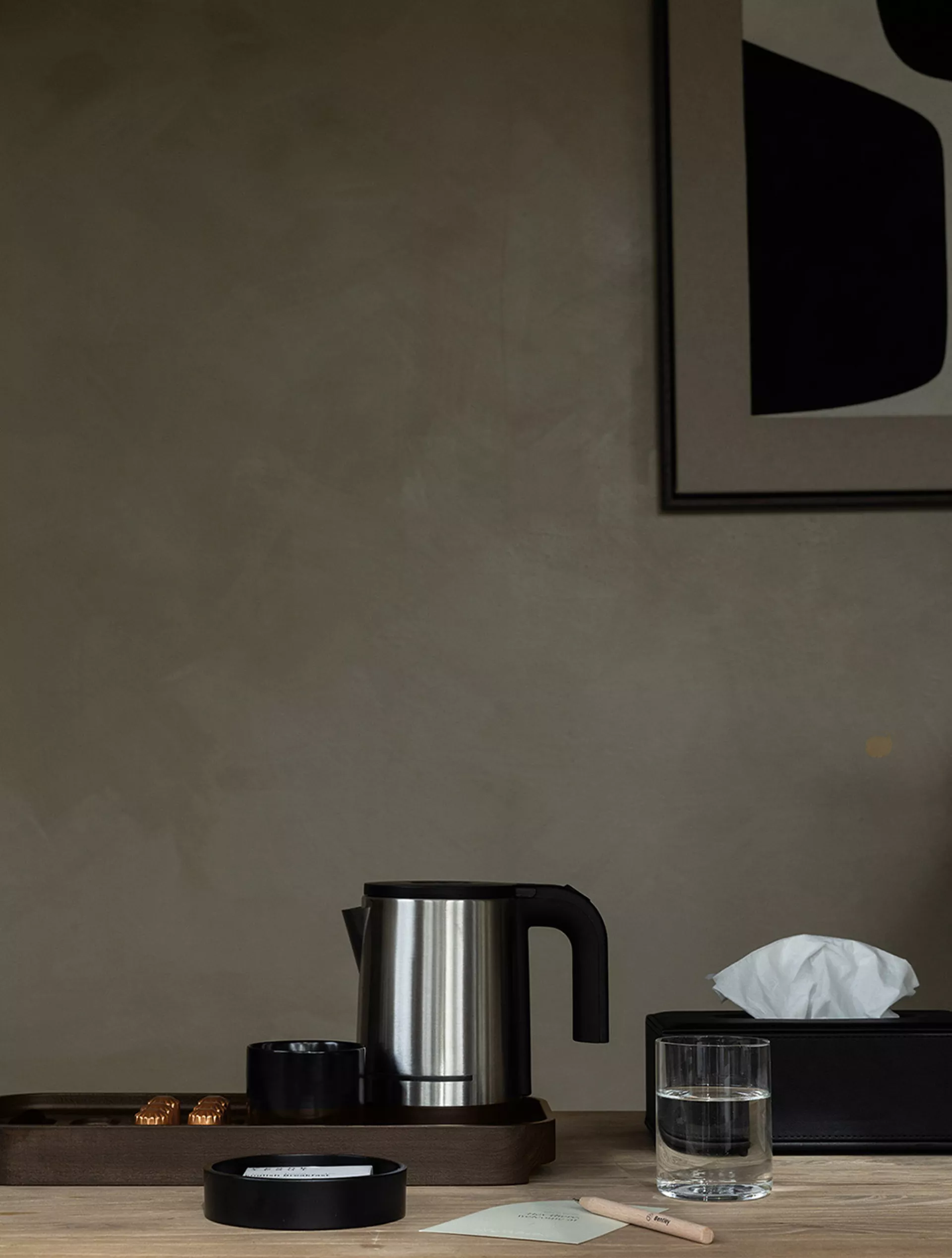 Ligna móttökubakkinn heldur nauðsynjum vel skipulögðum og bætir framsetningu á te- og kaffi á einfaldan og faglegan hátt.