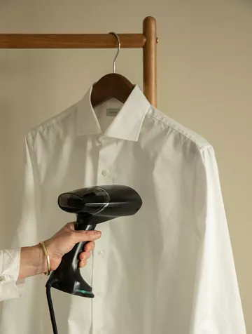Sérhannaður fyrir notkun í hótelherbergjum, hitnar á aðeins 25 sekúndum og veitir samfellda gufu í allt að 6 mínútur, sem fjarlægir krumpur og misfellur áreynslulaust.