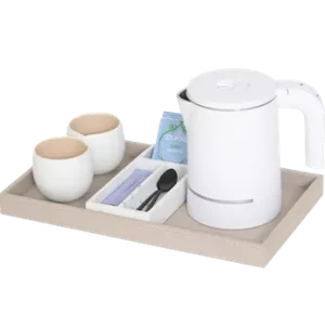 Hvítu katlarnir okkar eru úr hágæða efnum og hannaðir til að vera bæði endingargóðir og auðveldir í notkun. Þeir bjóða upp á hraðsuðu, sjálfvirka slökkvun og þægilegt griphandfang sem auðveldar hellingu.Hvítur litur ketilsins bætir við glæsileika í hvaða hótelherbergi sem er. Og með nettum stærðum eru þeir auðveldir í geymslu og taka lítið pláss.