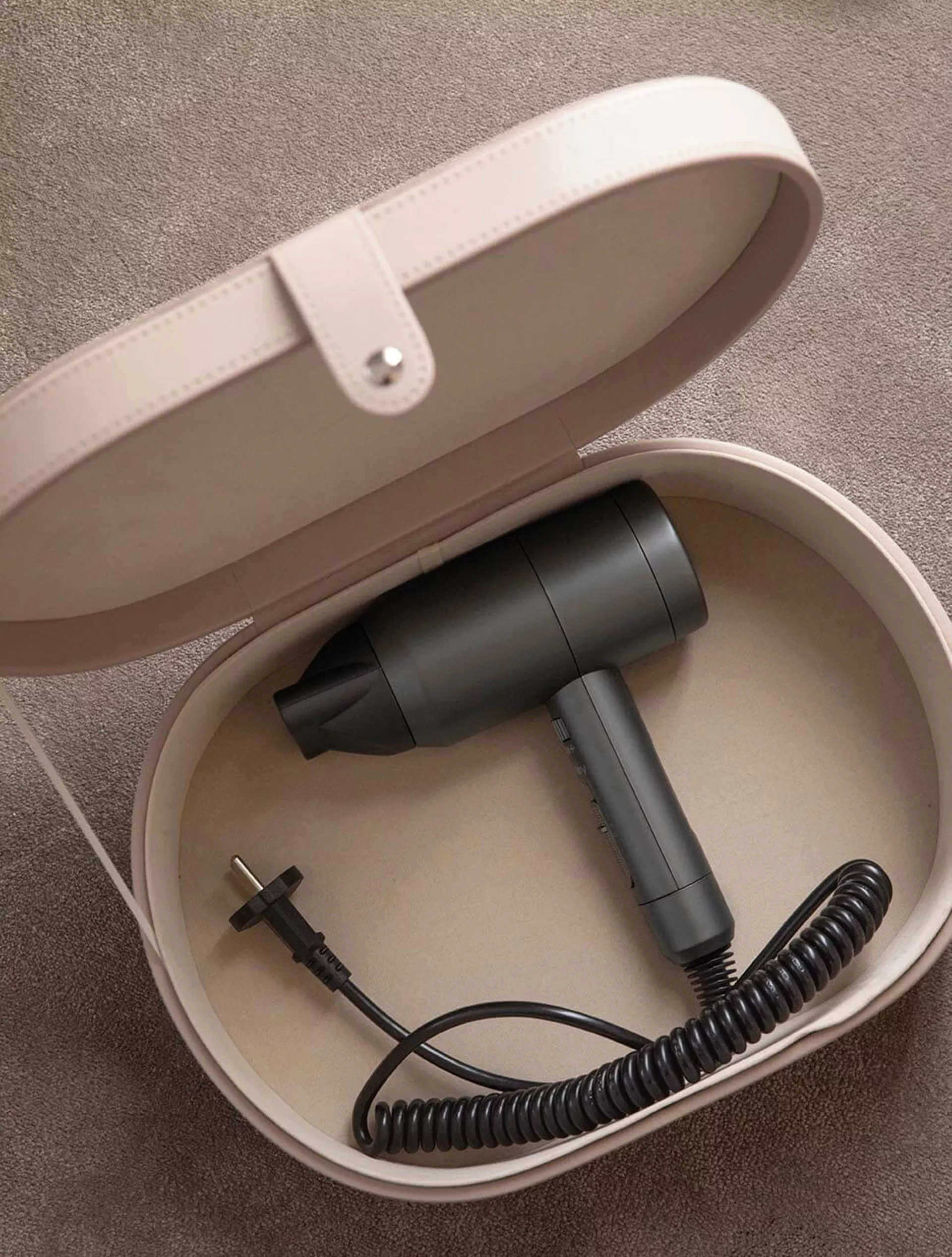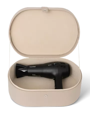 Þessi lúxuskassi, með ríkulegu áklæði og vönduðum saumum, er fullkominn fylgihlutur fyrir allar Bentley hárþurrkur. Hönnunin tryggir örugga og snyrtilega geymslu, auk þess sem boxið er vatnsfráhrindandi og auðvelt í þrifum – þannig heldur það sínum glæsilega svip í hvaða umhverfi sem er.