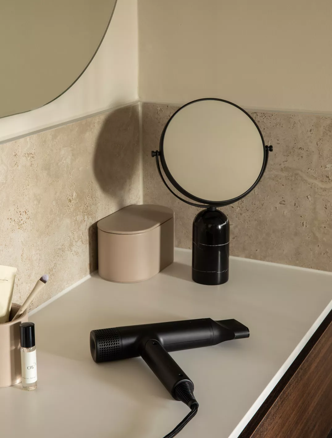 Sem hluti af Mix & Match línunni okkar, er Parker spegillinn með tvíhliða hönnun þar sem önnur hliðin býður upp á 3x stækkun – tilvalið fyrir snyrtingu eða förðun. Þetta er stílhreinn nytjahlutur sem sameinar notagildi og látlausan lúxus – fullkomið smáatriði fyrir hágæða baðherbergi á hótelum.