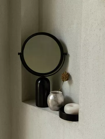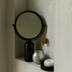 Einstök kringlótt hönnun, fáanleg í hvítum marmara og svörtu. Fullkomið til að skipuleggja þæginda/ aukahluta...